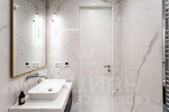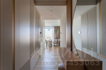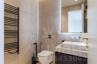Спланирована кухня-гостиная с обеденной зоной, мастер-спальня с собственным санузлом с душевой, гостевой санузел, прихожая. Квартира полностью меблирована и укомплектована премиальной бытовой техникой Miele, Smeg. Оборудованы три встроенных шкафа для одежды и хозяйственное отделение со стиральной машиной с функцией сушки. Предусмотрено машиноместо в подземном паркинге за дополнительную плату.
