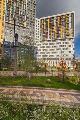 Апартамент расположен в ЖК бизнес-класса Новая звезда. Жилой комплекс имеет собственную закрытую территорию и тихий двор для отдыха.