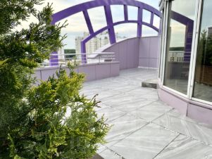 5-и комнатный ПЕНТХАУС с большой открытой террасой в ЖК "Миракс Парк". В квартире объединенные гостиная и кухонная зоны, 4 изолированных комнаты, 3 санузла (в двух с/у ванна и душ), 3 гардеробных. Квартира спланирована в два уровня. На нижнем уровне: две спальни с гардеробными и санузел. На верхнем уровне: вход в квартиру, кухня, гостиная, спальня, кабинет, два санузла, гардеробная. Высота потолков 3.65 м. Отделка стен и потолков выполнена из дерева лиственницы, полы - керамогранит (с подогревом) и дубовая доска. Итальянская кухня с гранитной столешницей. Канальная система кондиционирования. Фильтры воды для всей квартиры, дополнительная очистка воды обратным осмосом на кухне. Варочная панель индукционная! Пол открытой террасы оборудован подогревом для таяния снега. Подземный теплый двухуровневый паркинг с автомойкой. В квартире новый ремонт. Территория жилого комплекса огорожена и охраняется. Возможна аренда подземной парковки.