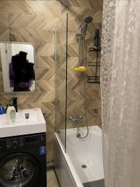 В квартире есть всё необходимое для комфортного проживания. Дизайнерский ремонт создает уютную атмосферу, а высокие потолки в 2.74 метра добавляют пространства. Квартира полностью меблирована: современная мебель на кухне и в комнате. В наличии вся необходимая техника: кондиционер, холодильник, телевизор и стиральная машина. Совмещенный санузел оборудован ванной. Окна выходят на улицу, поэтому в квартире всегда светло.