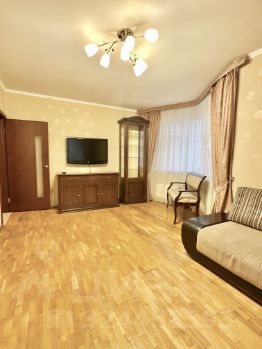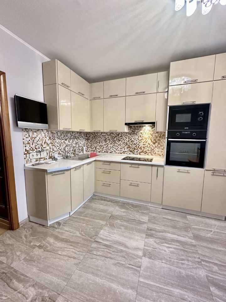 В квартире выполнен качественный евроремонт под себя. Просторная кухня (14 кв. м) оборудована всей необходимой мебелью и техникой: холодильник, кондиционер и телевизор. В комнатах также есть мебель - заходи и живи. Для вашего комфорта установлена стиральная машина. В ванной комнате — современная ванна.