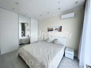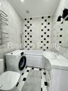- Просторная гостиная зона совмещена с кухней. Кухонный гарнитур оснащен техникой: холодильник, духовой шкаф, эл. варочная панель, вытяжка, посудомоечная машина. Диван и телевизор. Кондиционер.
