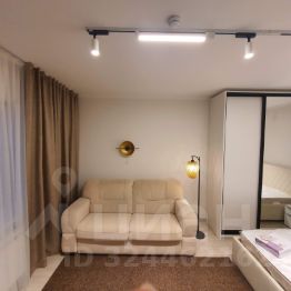 Гостиная-спальня с качественной кроватью, большим шкафом-купе, рабочей зоной и кондиционером.