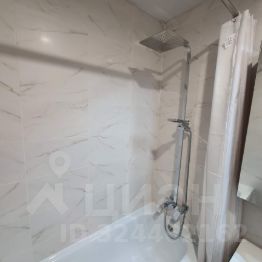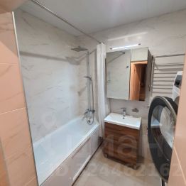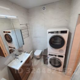 Современная ванная с тропическим душем, ванной, стиральной и сушильной машинами, системой фильтрации воды и водонагревателем.