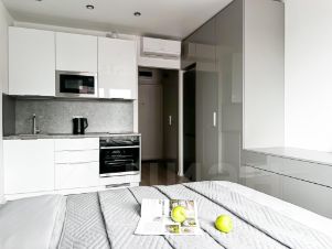 Бытoвaя теxника: хoлoдильник, варoчная панель, электрический чайник, стиральная машина, духовой шкаф, кондиционер.
