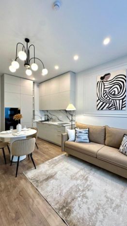 • Современная кухня с полным набором техники (варочная панель, микроволновка, холодильник, посудомоечная машина, духовой шкаф),