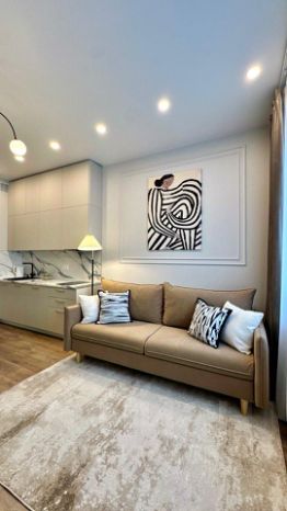 Квартира находится на 40 этаже небоскреба с дизайнерским ремонтом и панорамным видом. Она полностью укомплектована всей необходимой техникой и мебелью для комфортной жизни: