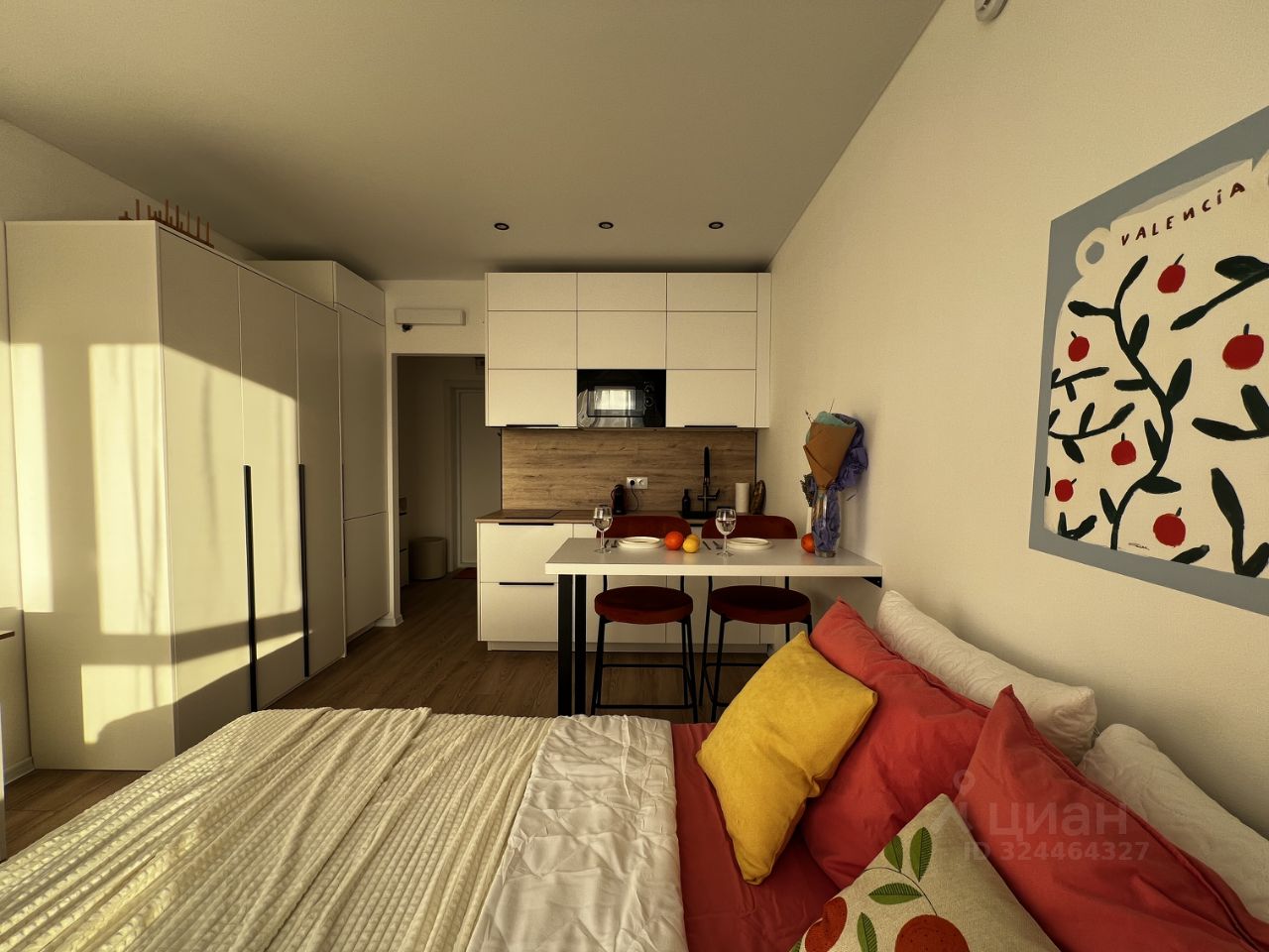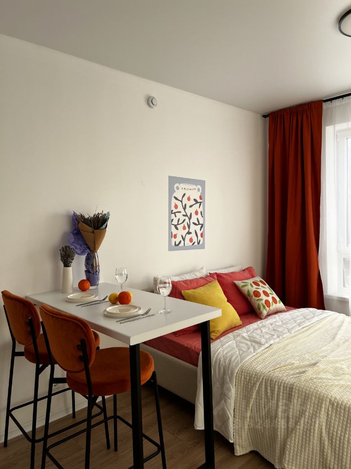 Сдаётся впервые! Замечательная уютная студия. Есть вся необходимая современная мебель и бытовая техника. Двуспальная кровать. Кухонный гарнитур. Посудомоечная машина. С/узел совмещённый. Душ-кабина. Квартира сдаётся на длительный срок. БЕЗ ДОМАШНИХ ЖИВОТНЫХ.