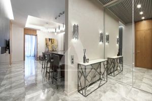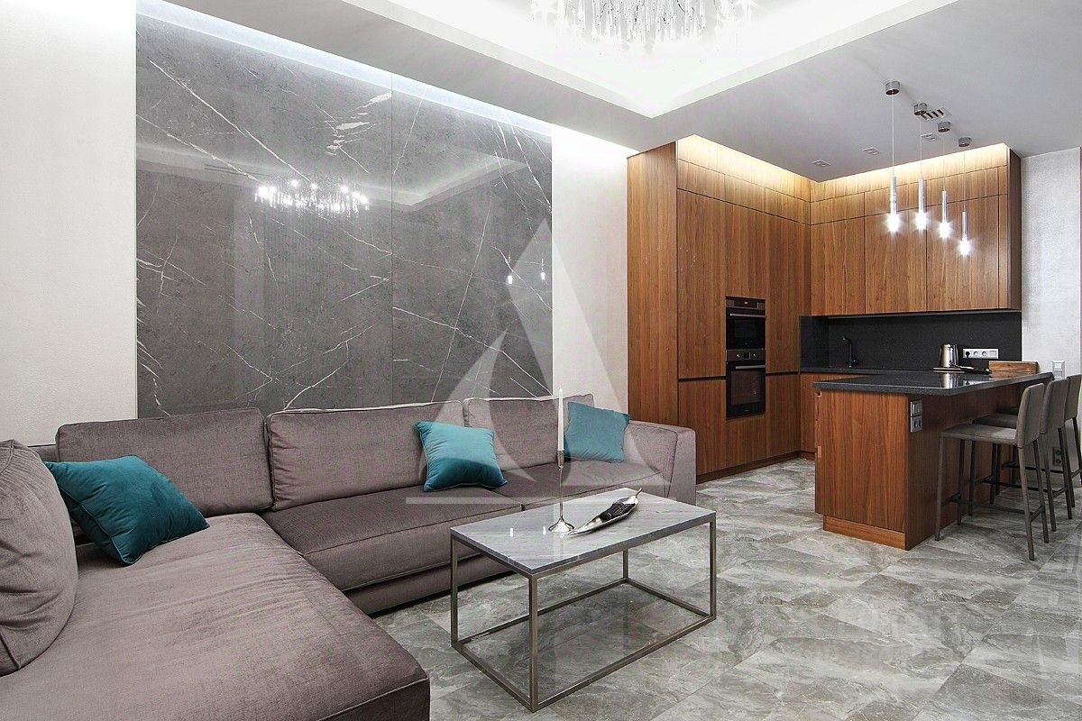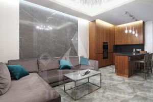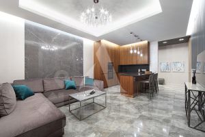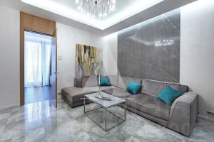 Трехкомнатная квартира в клубном доме Smolensky De Luxe. Общая площадь квартиры 92 кв. м. В квартире выполнена качественная дизайнерская отделка, с применением дорогих натуральных материалов. Планировка: общая зона кухни-столовой-гостиной, две спальни, два санузла, две гардеробные. Лоджия. Квартира полностью меблирована о оснащена всей необходимой бытовой техникой. Мебель и техника от ведущих европейских производителей. В квартире установлена система тёплых полов. Вид из окон на церковь.