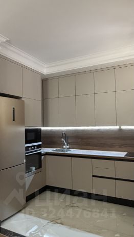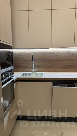 Квартира укомплектована встроенной кухней, мебелью и бытовой техникой.
