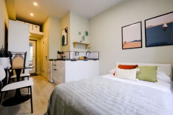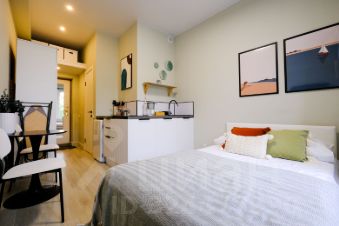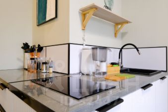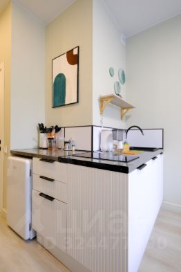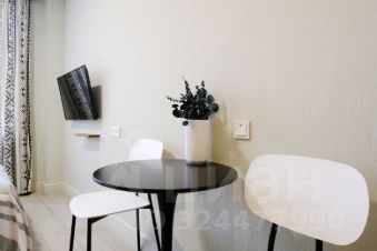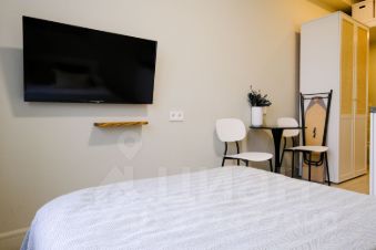 В квартире есть всё необходимое для комфортной жизни. Студия оборудована современной мебелью как в комнате, так и на кухне. В распоряжении арендаторов также холодильник, телевизор и стиральная машина. Санузел совмещённый, с душевой кабиной. Окна выходят на улицу, что обеспечивает хорошее естественное освещение.