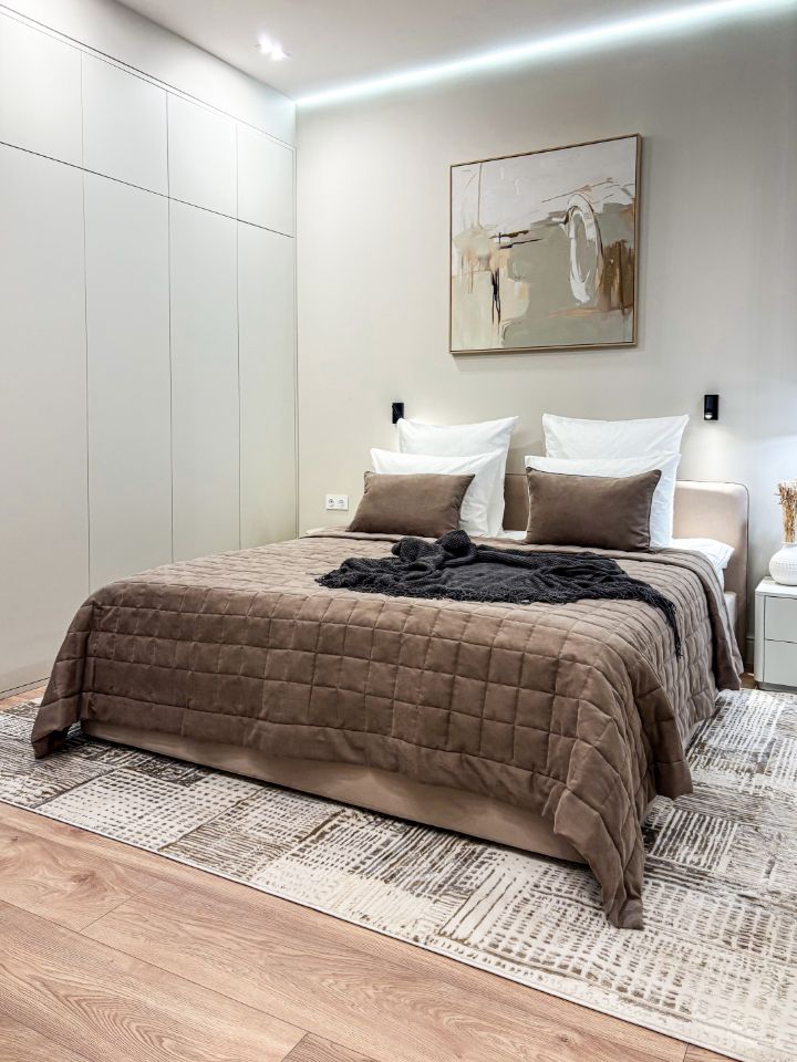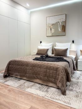 - спальня со шкафом и прикованные тумбы, телевизор;