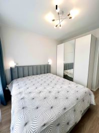 В спальне большая кровать с подъемным механизмом, анатомический матрас Аскона Serta 180х200см, шкаф и бризер AIRNANNY, поэтому в квартире всегда свежий воздух даже с закрытыми окнами. Установлен кронштейн для телевизора, так что при необходимости вы можете повесить свой.