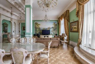 Отделка выполнена по индивидуальному дизайн проекту с использованием экологических материалов, в стиле Времена года. Подвесные потолки, фреска, мозаика, пол - паркетная доска ценных пород. Эксклюзивная, дизайнерская итальянская мебель, выполненная на заказ. Имеется вся необходимая бытовая техника от мировых производителей, кондиционирование каждой комнаты. Потолки 4 метра, панорамные окна выходят на центр города, Москва-сити.