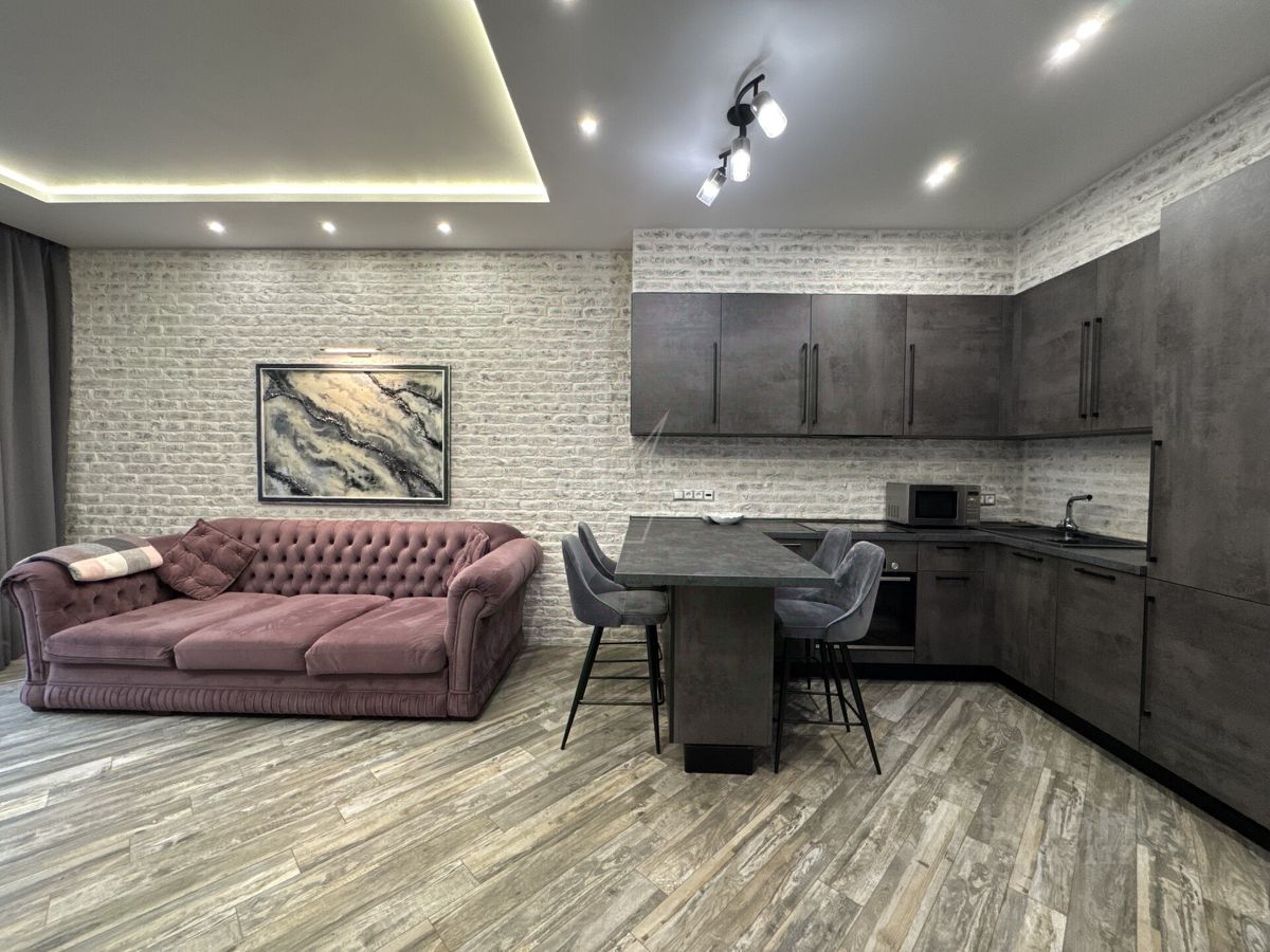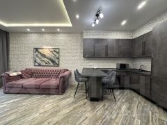 Ремонт в Лофт стиле. Квартира полностью с мебелью, любые детали индивидуально обсуждаются. Окна выходят на две стороны: на улицу, где виден строящийся дом под офис и во двор. В квартире выполнена хорошая шумоизоляция, при закрытых окнах со стороны стройки ничего не слышно. Есть гардеробная комната и много больших встраиваемых шкафов. В наличии имеется вся необходимая бытовая техника + в каждой комнате есть кондиционер. В квартире очень тепло.