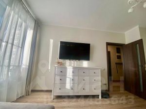 Комната меблирована: есть удобное спальное место, зона для отдыха и место для хранения вещей. Большие окна обеспечивают много естественного света, благодаря чему квартира выглядит очень светлой и уютной.