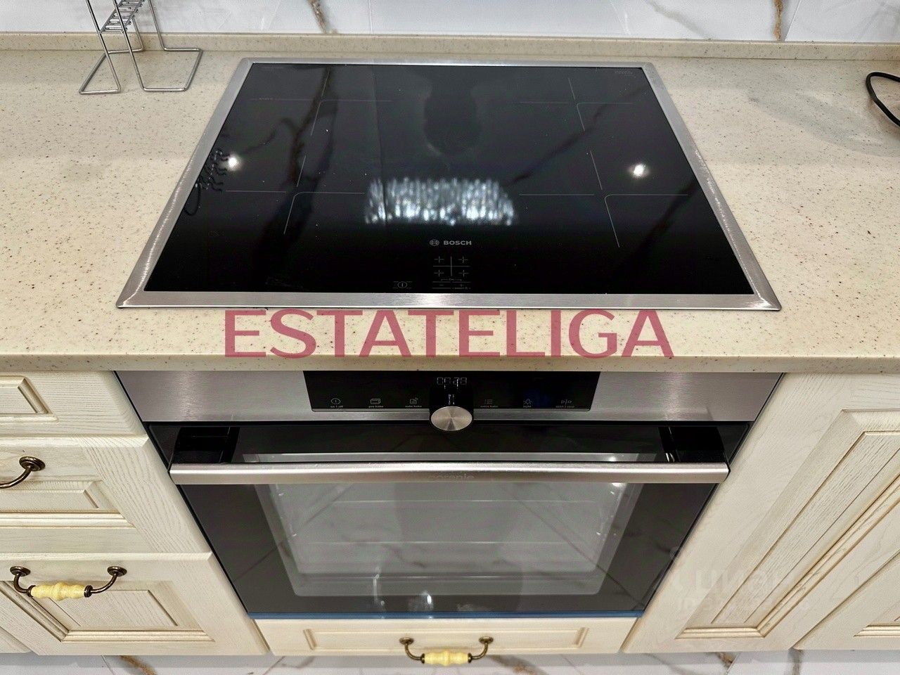 - Встроенная техника: посудомоечная машина Bosch, стиральная машина Haier, варочная панель Bosch, духовой шкаф Gorenje, холодильник Samsung
