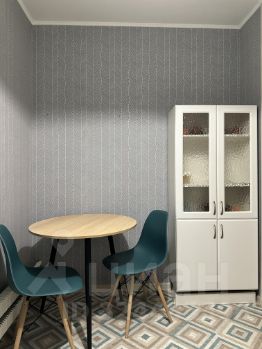 Кухня с обеденным столом для двоих, из техники комбинированный духовой шкаф с газовой плитой, холодильник, здесь же установлена стиральная машина.