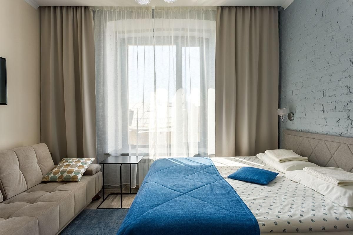 Уютные апартаменты, оборудованные всем необходимым для комфортного проживания. В апартаментах: двуспальная кровать, диван, кухонная зона со всей необходимой техникой и посудой, санузел с душем.