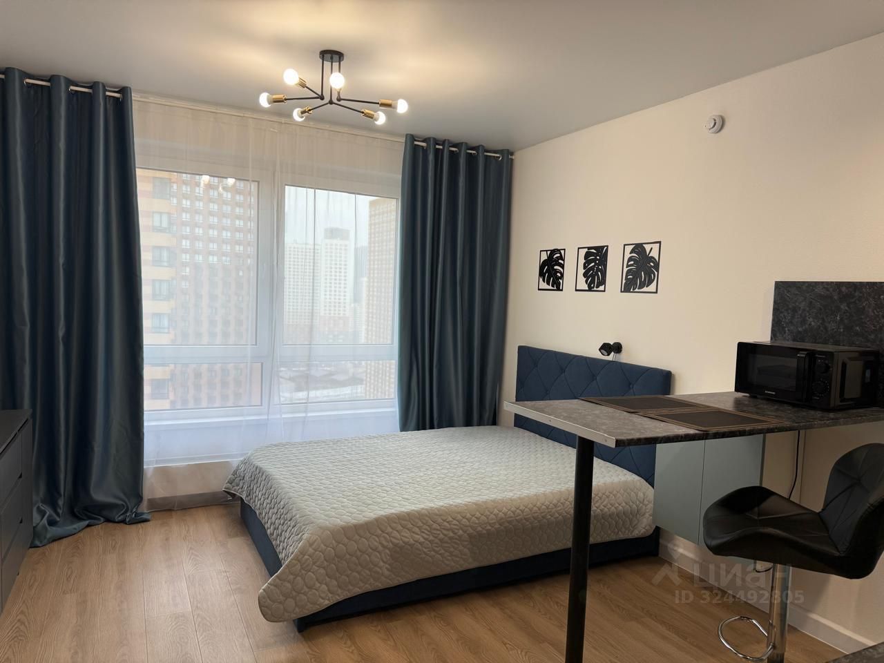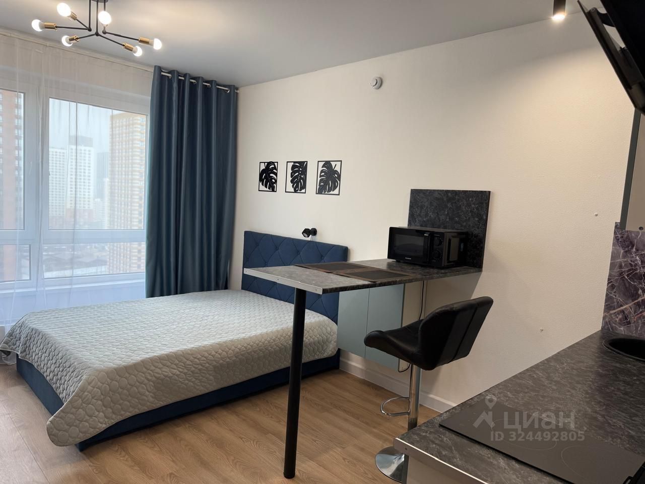В квартире сделан евроремонт, поэтому она выглядит стильно и современно. Просторная комната и кухня оборудованы всей необходимой мебелью, а также техникой: кондиционер, холодильник, телевизор и стиральная машина готовы к использованию. Совмещенный санузел оснащен душевой кабиной. Окна выходят во двор, что обеспечивает тишину и спокойствие.