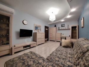 В ГОСТИНОЙ - кондиционер, телевизор, стол, стул, интернет Вай-Фай, ортопедический диван(раскладывается), шкаф и тумба для одежды, комод, шкаф для книг.