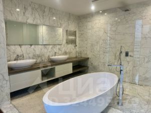 К спальне примыкает гардеробная и ванная комната. Одна из особенностей ванной, —мраморная отделка. Чашеобразная ванна устанавливается в центре помещения для лучшего обзора. Панорамное остекление позволяет совмещать водные процедуры с созерцанием красот столицы. Ванные полностью укомплектованы сантехникой европейских производителей.