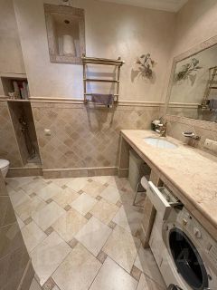 В квартире 4 изолированные комнаты,из них две спальни с гардеробными комнатами, зал, кабинет. Гостинная, кухня, два сан.узла (ванна с джакузи), подсобные помещения с двумя встроенными шкафами и отдельным местом для гладильного оборудования. Квартира оснащена качественной бытовой техникой, кондиционеры - 5 штук, встроенный пылесос канадской фирмы "Kronemark", два бойлера на время отключения горячей воды, посудомоечная машина, холодильник, стир.машина и пр. Теплые полы на кухне и в санузлах. Три встроенный шкафа. В наличии есть парковочное место в паркинге.