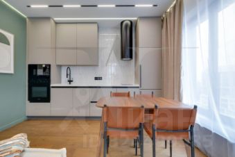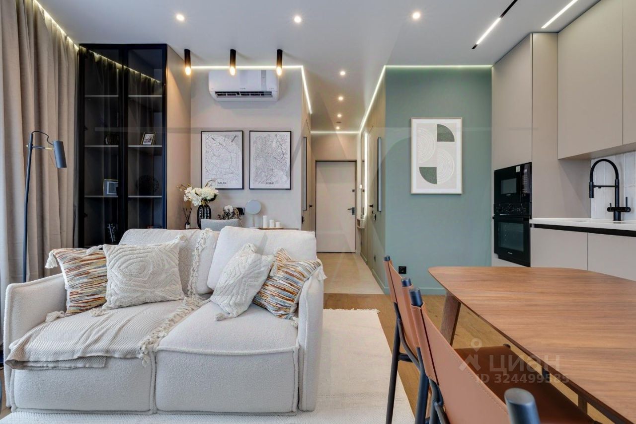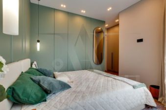 Квартира с новой мебелью, кухонным гарнитуром и техникой. Планировка: кухня-гостинная, спальня, совместный санузел, гардеробная. Высота потолков 3 метра.