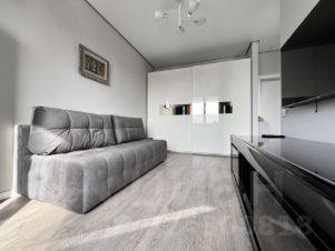 Удачная планировка: в студии два окна, грамотное зонирование кухонной зоны (полностью оборудована необходимой техникой и метелью) и комнаты отдыха, совмещенный санузел.