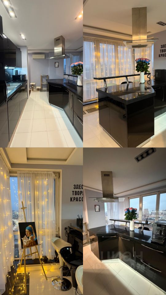 Кухня: Окна на три стороны, вид на Сити, панорамная лоджия с теплым полом, окнами в пол и барной зоной. Много мест для хранения кухонной утвари.