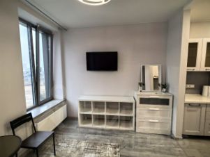 Квартира только после свежего ремонта — светлая, аккуратная и очень функциональная. Формат заехал и живи: вся мебель и техника новые. Просторная комната с большими панорамными окнами, уютным диваном (раскладывается) , зоной отдыха и рабочим местом.