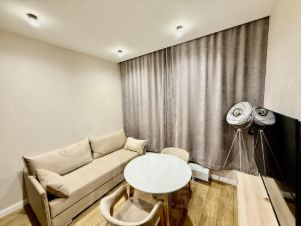 Апартаменты расположены на 9 этаже современного 21-этажного дома. Высокие потолки в 3 метра придают пространству ощущение свободы и комфорта.
