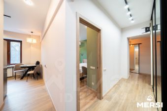 Практичная, функциональная планировка (комнаты изолированные): Кухня, гостиная, спальня, совмещенный санузел с душевой. ГАРДЕРОБНАЯ КОМНАТА + 2 встроенных шкафа. ОЧЕНЬ МНОГО МЕСТ ХРАНЕНИЯ. Высокие потолки. Деревянные стеклопакеты. Квартира полностью меблирована. Встроенная кухня со всей необходимой бытовой техникой, включая посудомоечную машину. Подогрев полов. Кондиционеры. Качественная сантехника.