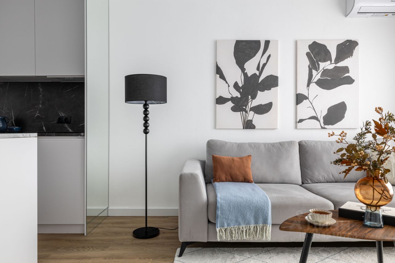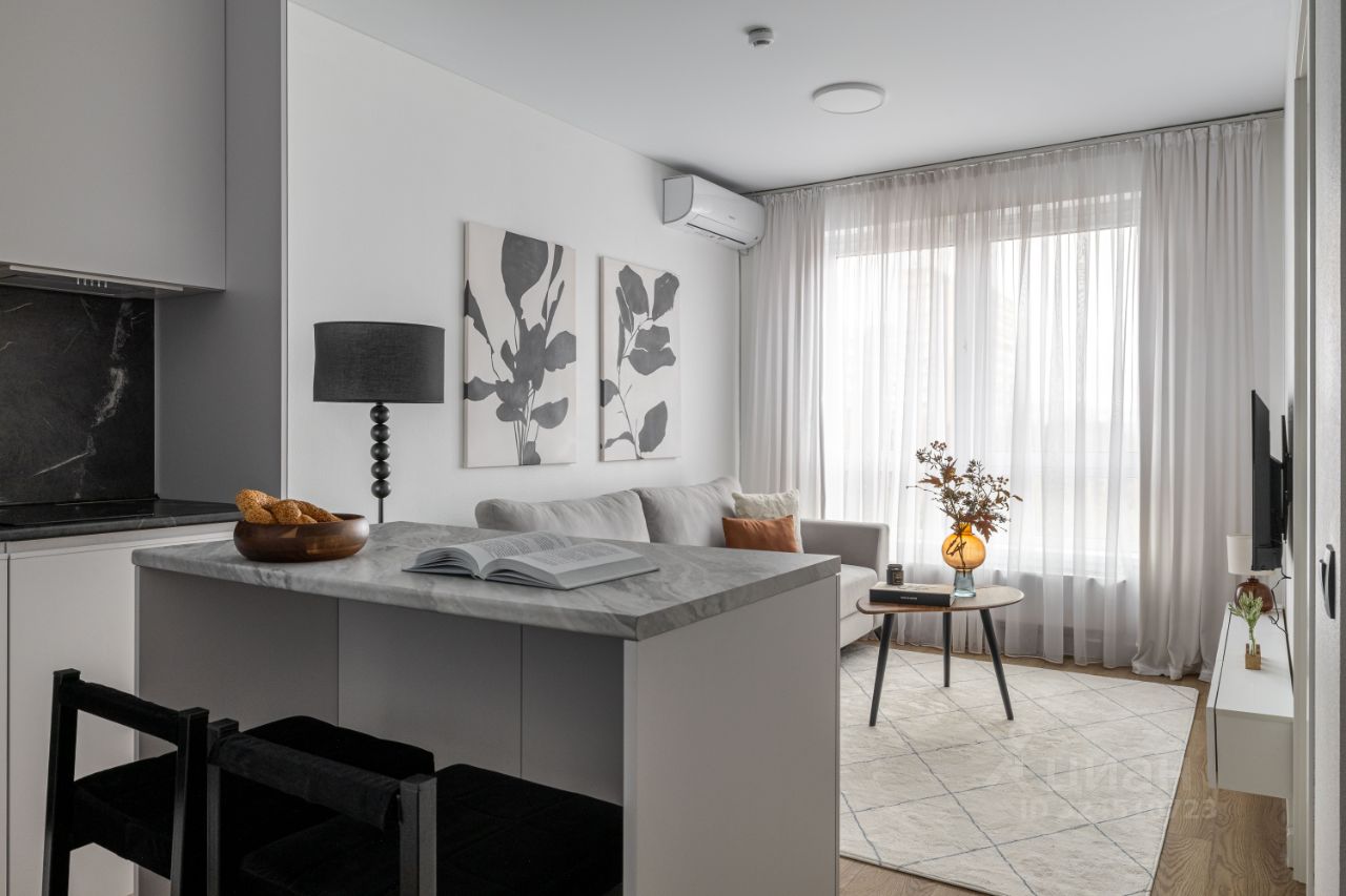 В квартире прекрасно продумана эргономика пространства. Просторная гостиная с кухонной зоной и отдельная спальня. Полностью меблирована: - двуспальная кровать с ортопедическим матрасом, комфортный раскладывающийся диван, вместительные системы хранения, туалетный столик, ТВ зона.