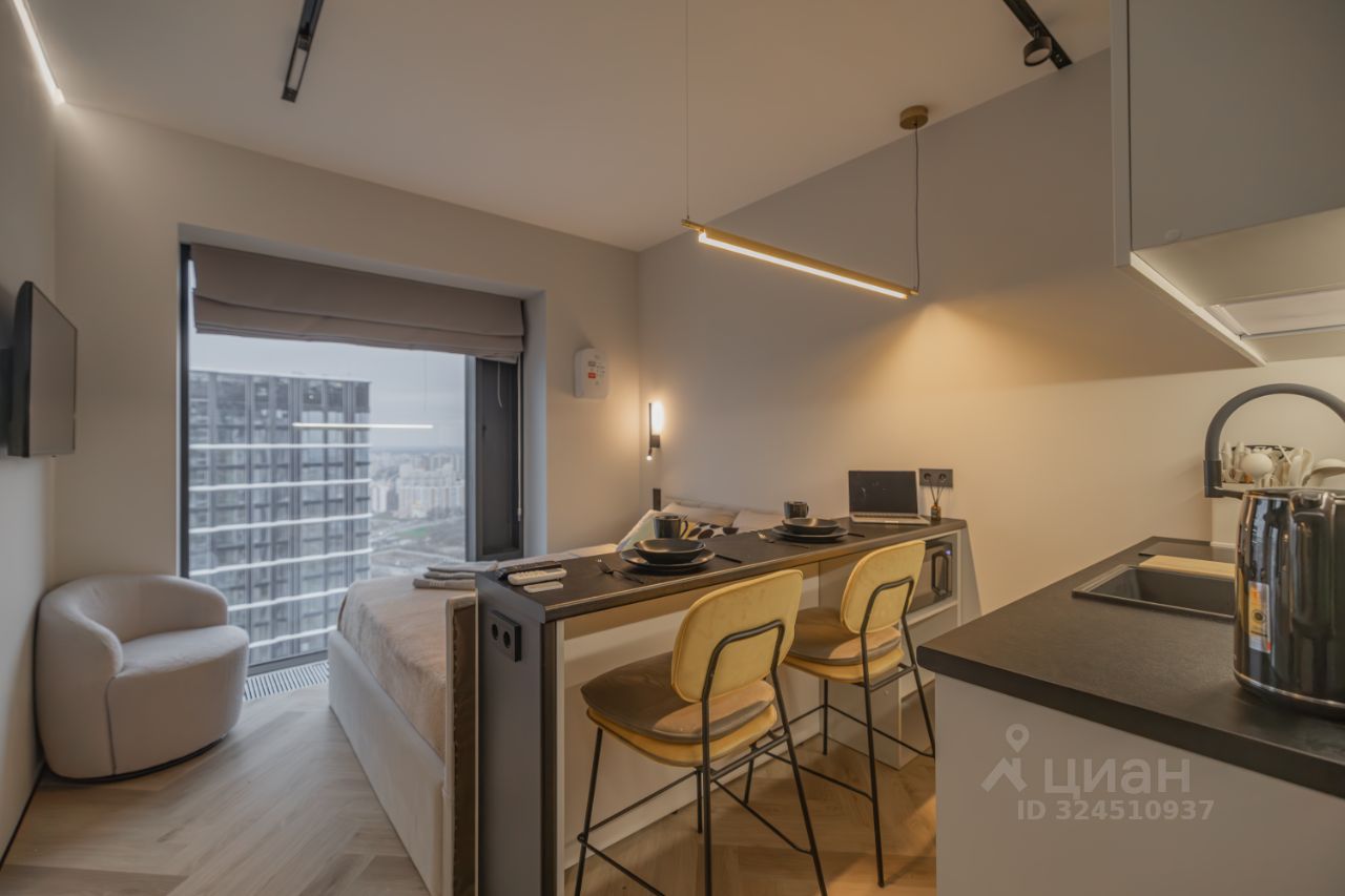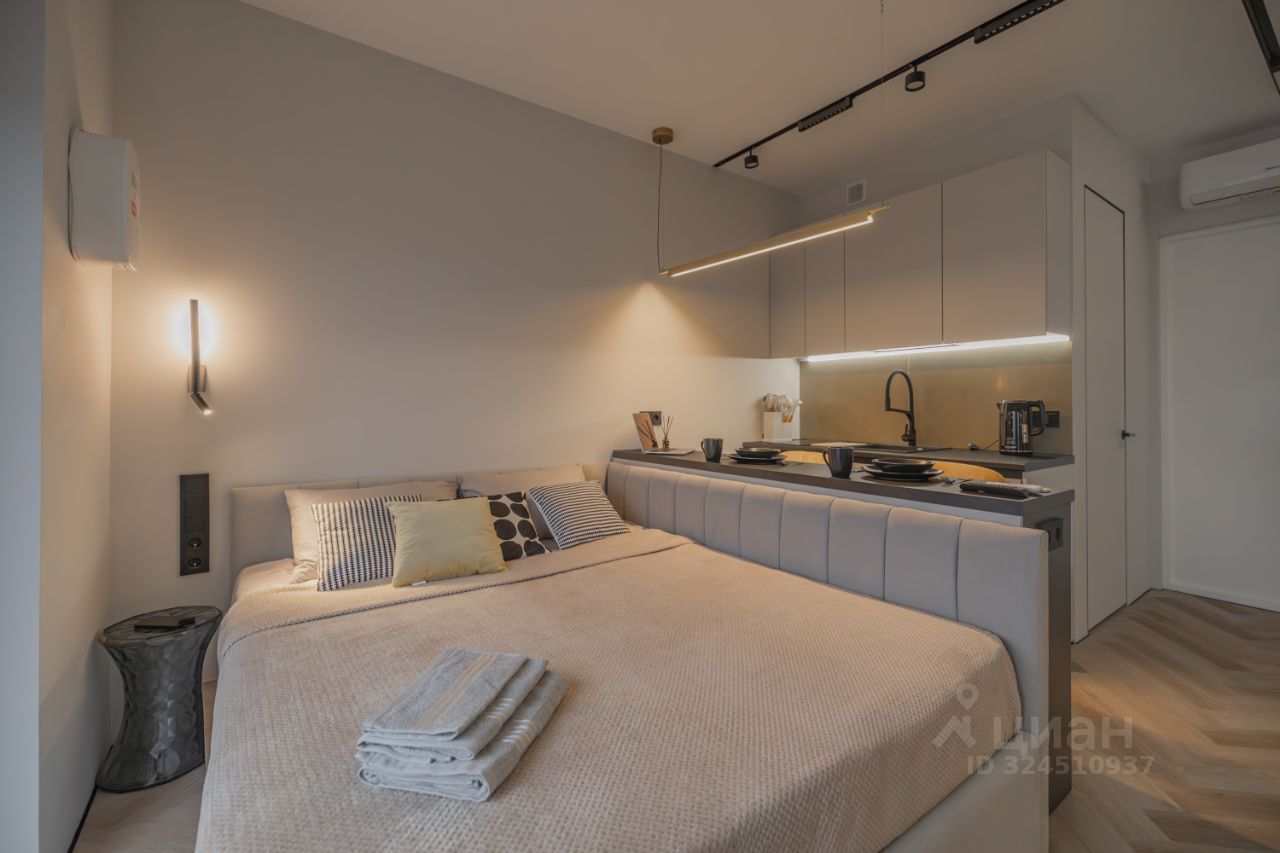 Современная, светлая студия после свежего ремонта. Продуманная планировка, тёплый минимализм и большие окна делают пространство максимально уютным.