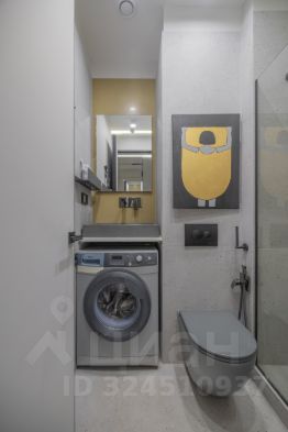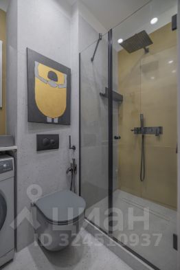 • Современная ванная комната с душем, феном и набором гигиены