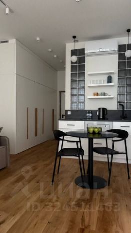 Квартира полностью укомплектована и сдается с мебелью (кухня, вместительный шкаф (выполнены на заказ), диван, комод, обеденная группа (стол, стулья), кровать, журнальный столик) и бытовой техникой (встроенные холодильник и СВЧ, кондиционер, стиральная машина, индукционная варочная панель, фильтр очистки воды, чайник).