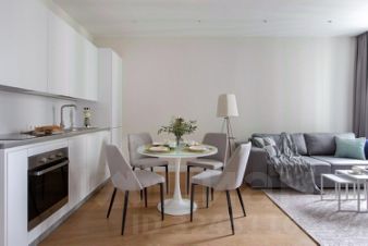 Предлагается в аренду 2-комнатная квартира 4014 с евро планировкой (кухня-гостиная + 1 спальня) с высокими потолками и приятным видом на обустроенный внутренний двор площадью 50 м2, расположенная на втором этаже нового арендного дома Матч Поинт. Современный эргономичный дизайн, вся необходимая мебель, техника, разработанная с использованием умных технологий. Просторная кухня-гостиная оснащена встроенной техникой фирмы Hotpoint: 2-х камерным холодильником, варочной 4-х комфорочной панелью, духовым шкафом, посудомоечной машиной и вытяжкой. Мебель европейского производства: при входе в апартаменты расположен вместительный шкаф (Permo, Италия), пуф, массив которого выполнен из бука и хвойных пород, материал обивки - ткань "гусиная лапка", панель вешалка, а также отдельная гардеробная комната. Зона кухни оборудована комплектом кухонной мебели с белыми деревянными фасадами, стильной обеденной группой на 4 персоны: круглый стол с белой стеклянной столешницей и удобными стульями с мягкими тканевыми сиденьями коллекции MASON. В апартаментах предусмотрены два спальных места: в гостиной двуспальный раскладной диван (190 см * 150 см, механизм "еврокнижка", тканевая обивка Casain piain); в спальне большая кровать (180 см * 200 см) с мягким изголовьем и матрасом, выполненным из бельгийского материала с ортопедическим эффектом. Благодаря 5-ти зональному пружинному блоку матраса Ваш позвоночник будет получать превосходную поддержку. Помимо кровати в спальне из мебели есть прикроватные тумбочки со стильными подвесными светильниками над ними, шкаф с белыми премиальными глянцевыми фасадами и зеркалами (вся мебель фирмы Permo, Италия). Чтобы ничего не отвлекало от здорового сна - плазменный TV от Panasonic с TV тумбой дизайнеры разместили в гостиной. Для Вашего комфорта в каждой комнате установлен кондиционер. На окнах помимо тюли есть портьеры Design&Colors, SOLKLIMA DESEN. Совмещенный санузел оборудован душевой кабиной и раковиной, вместительной и удобной в использовании стиральной машиной, большим зеркалом с подсветкой.