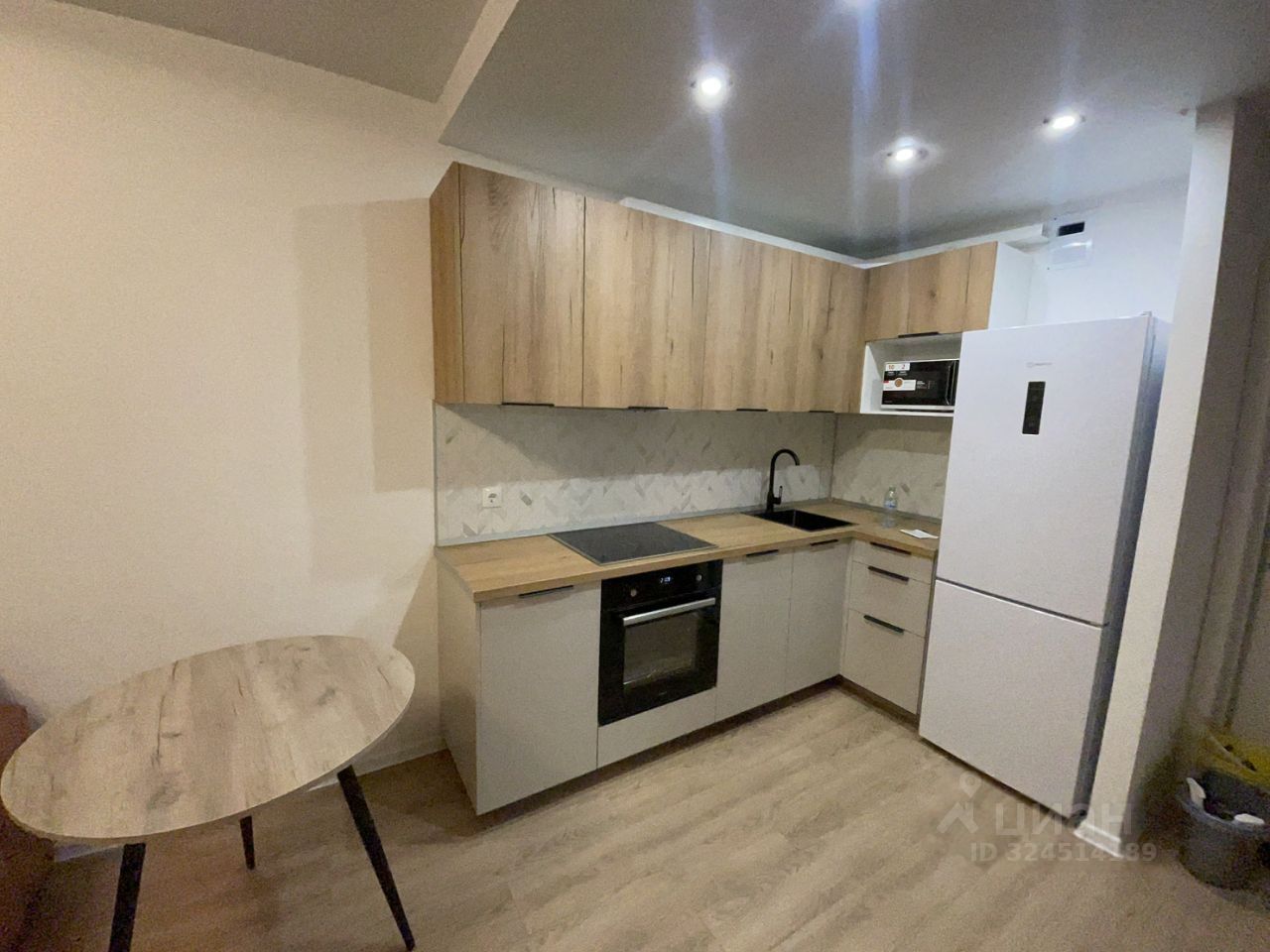 В квартире имеется вся необходимая техника, кухонный гарнитур, обеденная зона,