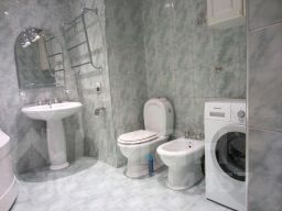 В квартире евроремонт, на полу штучный дубовый паркет, в большом совмещенном санузле на полу и стенах плитка, которая гармонично сочетается с итальянской сантехникой, просторной душевой кабиной и гидромассажной ванной.