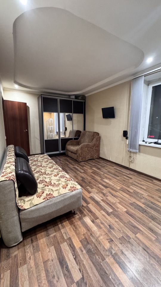 В комнате и на кухне есть необходимая мебель, так что не придется беспокоиться о дополнительных затратах. Из техники в вашем распоряжении будут холодильник, телевизор и стиральная машина. В совмещённом санузле установлена душевая кабина. Окна квартиры выходят на улицу, поэтому можно наслаждаться естественным светом. Балкон — отличное место для утреннего кофе или вечернего отдыха.