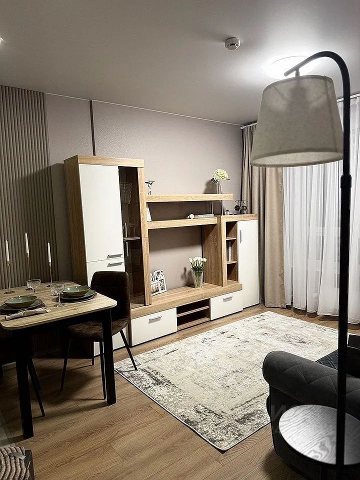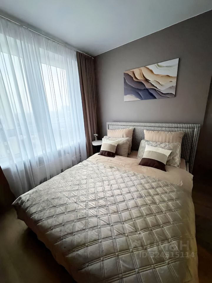 Сдается уютная двухкомнатная квартира с евроремонтом в современном доме. Общая площадь квартиры составляет 38 кв. м, из которых 11 кв. м отведены под жилую зону, а просторная кухня занимает 18 кв. м. Квартира находится на 9 этаже 24-этажного дома, окна выходят во двор, поэтому в квартире тихо и спокойно.