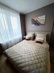 В квартире сделан качественный евроремонт, установлена современная мебель на кухне и в комнате. Для вашего комфорта есть вся необходимая техника: холодильник, телевизор и стиральная машина.