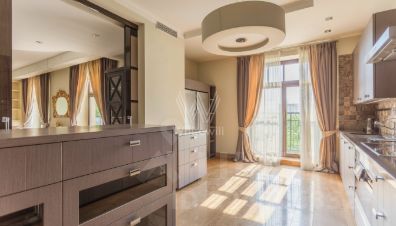 Выполнена дизайнерская отделка с использованием натурального мрамора и дерева, интерьер оформлен в классическом стиле.