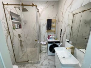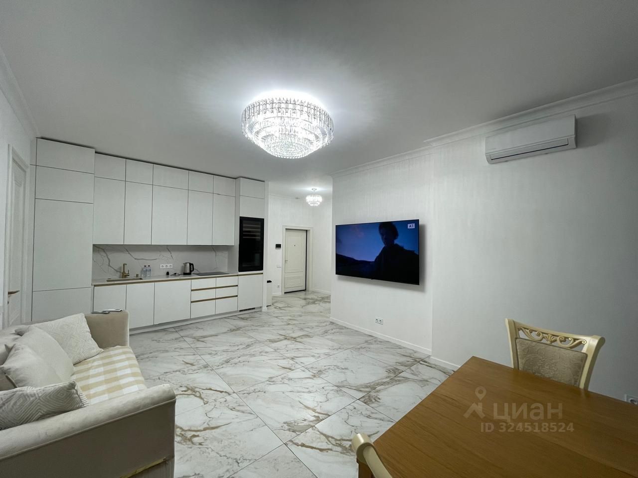 В квартире выполнен дизайнерский ремонт, что придаёт ей стильный и современный вид. В вашем распоряжении просторная кухня с мебелью и всей необходимой техникой: холодильник, посудомоечная машина и стиральная машина. В комнатах также есть мебель. Для вашего комфорта установлены кондиционер и телевизор. В квартире два совмещённых санузла: один с ванной, другой с душевой кабиной, что очень удобно для семьи или нескольких жильцов.