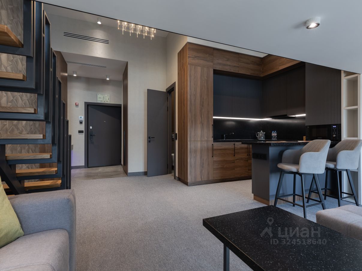 Апартамент 15 - современный двухуровневый лофт на 28 этаже 28-этажного ЖК Матч Поинт представляет собой просторную квартиру площадью 46 кв. м с высокими 4-метровыми потолками. Пространство разделено на 3 зоны: кухонную, где есть все необходимое для приема и приготовления пищи, гостиную на 1-м этаже и спальню на 2-м этаже. В апартаменте с комфортом могут разместиться 2-4 человека благодаря полноценной двуспальной кровати и большому раскладному дивану. Изюминкой лофта является дизайнерский ремонт и панорамные окна, из которых открываются восхитительные виды на парк Фили и кипящий жизнью Кутузовский проспект!
