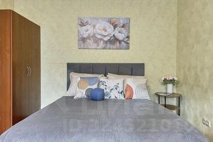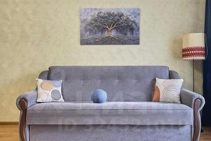Комфорт и удобства Большая двуспальная кровать и раскладной диван — комфортно разместятся до 4 гостей. Современный шкаф, жалюзи и мягкое освещение — всё для удобного сна и хранения. Полностью оборудованная кухня: варочная панель, холодильник, микроволновка, чайник, стиральная машина и вся необходимая посуда. Санузел с ванной, душем, раковиной и сушилкой — приезжайте налегке, всё уже есть. Телевизор, уютный декор и рабочая зона — удобно для отдыха и удалённой работы.