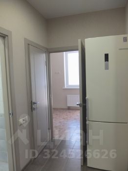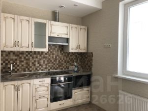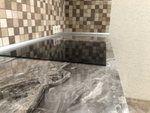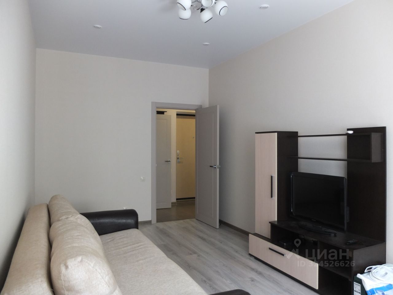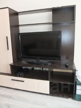 Кухонный гарнитур с доводчиками дверей в светлых тонах, столешница сделана из искусственного камня. Техника встроенная: варочная панель, духовой шкаф, микроволновка, вытяжка. Холодильник 2-х камерный, стоит в нише в прихожей, но можно его по желанию переместить на кухню. Обеденный стол, стулья. Выход на балкон с кухни. Окна на улицу. В комнате диван, тумба под телевизор, телевизор с плоским экраном. ПРИХОЖАЯ: