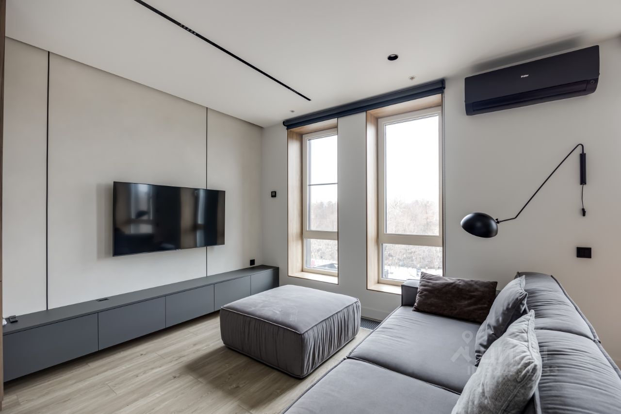 Апартаменты расположены на 7 этаже, с большими панорамными окнами, открывающими прекрасный вид на город.