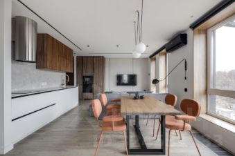 Ремонт выполнен на высоком уровне с индивидуальным дизайн проектом. Кухонный гарнитур включает встроенный холодильник, посудомоечную машину, микроволновую печь, индукционную плиту и духовой шкаф, измельчитель, так же в гостиной кондиционер.